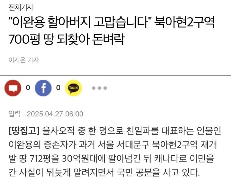 "이완용 할아버지 고맙습니다" 북아현2구역 700평 땅 되찾아 돈벼락 - 땅집고 > 뉴스
