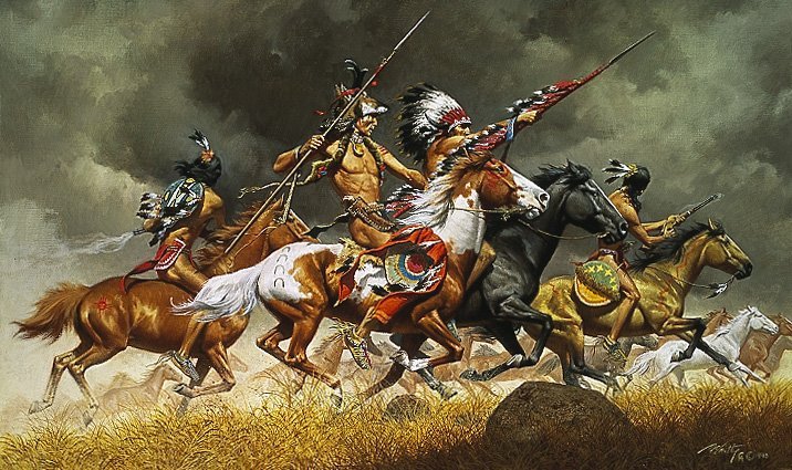 말탄 원주민들이 점점 속도를 올려서 천막 주위를 빠르게 돌고 있는 상황.